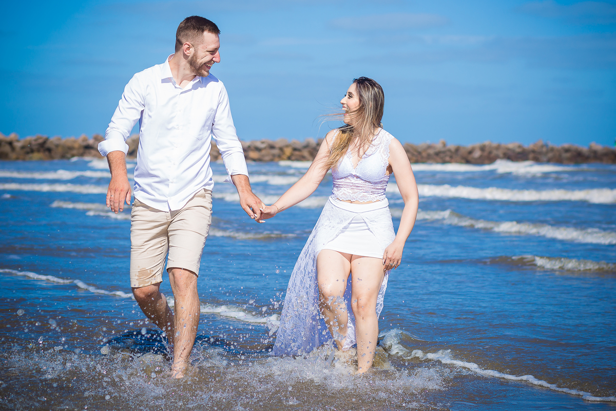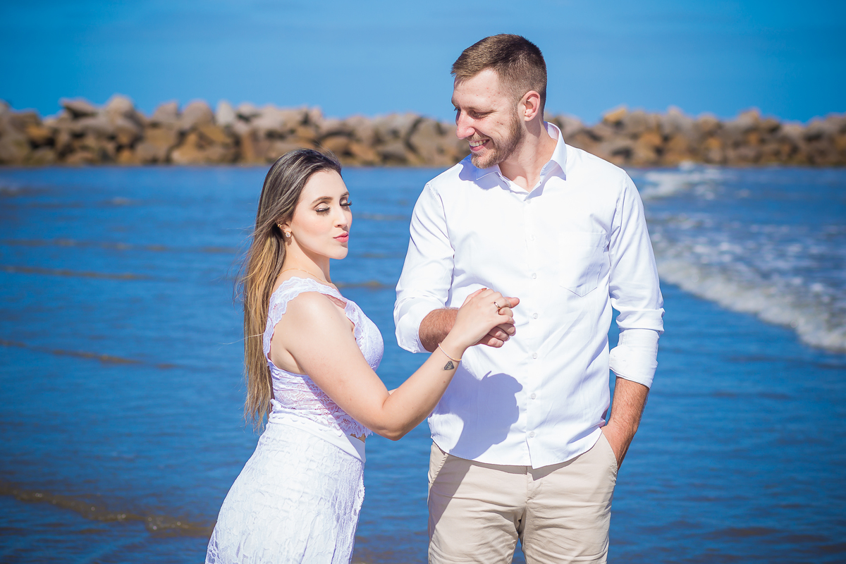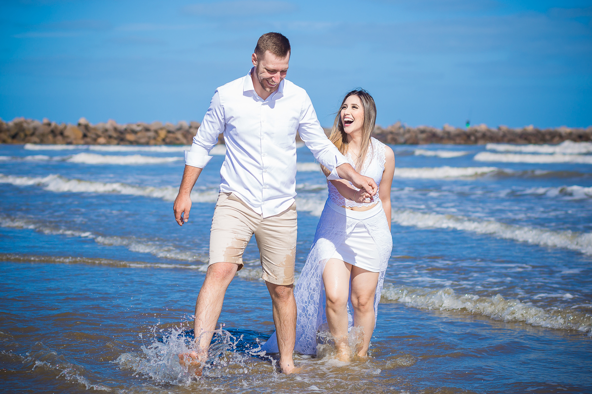 ensaio na praia Pré wedding Ensaio casal praia do cassino maior praia do mundo noivos