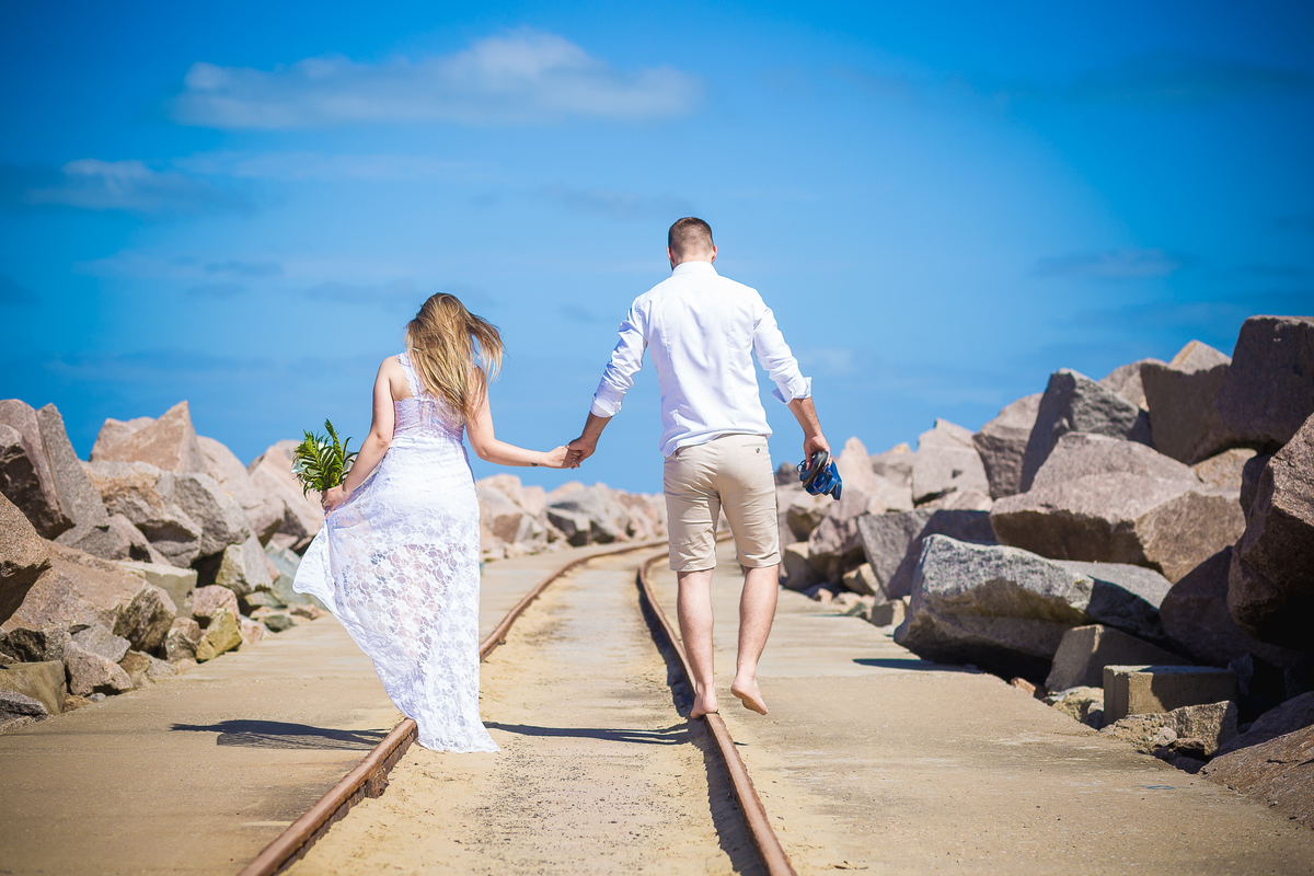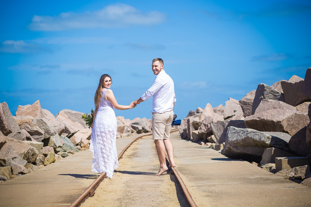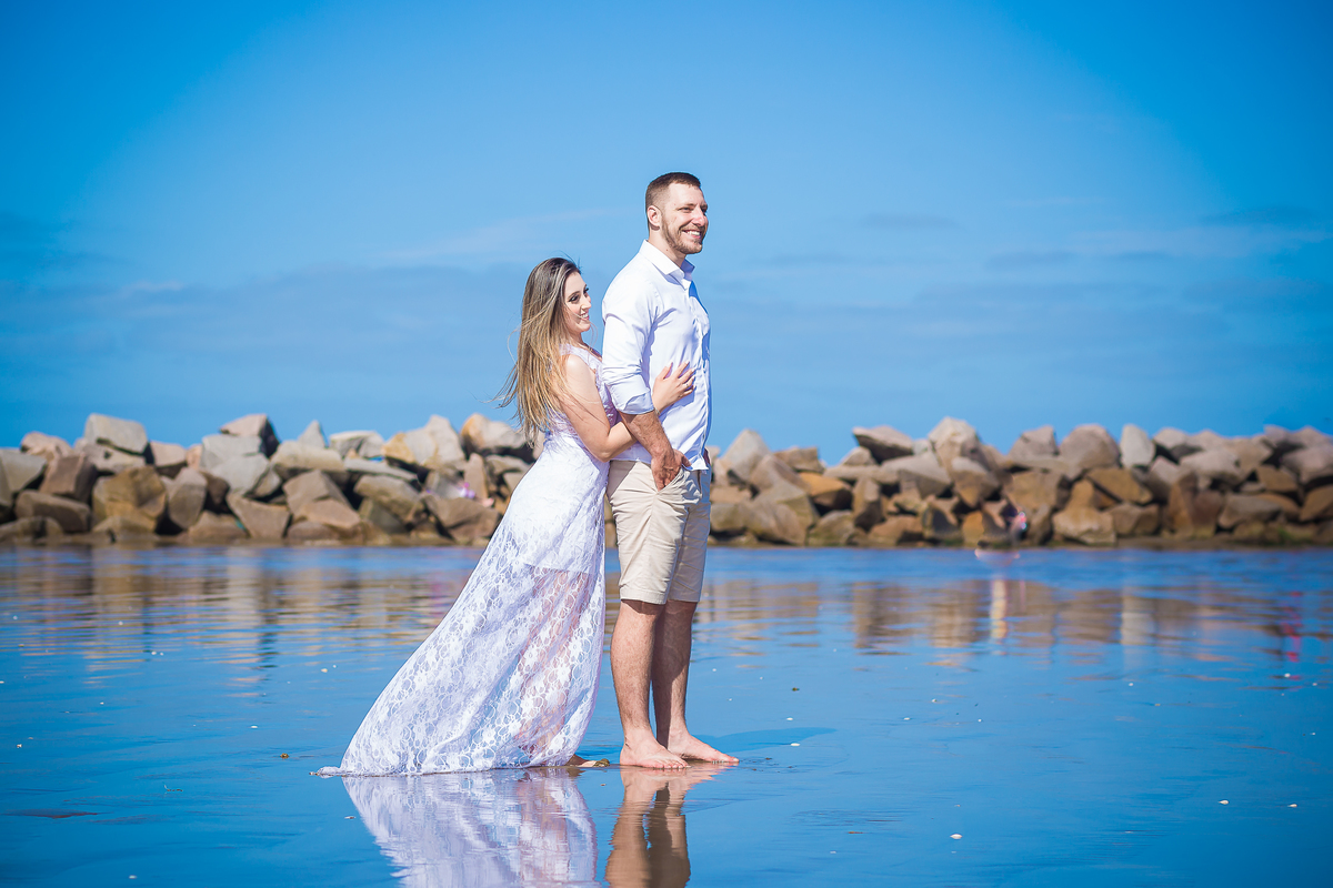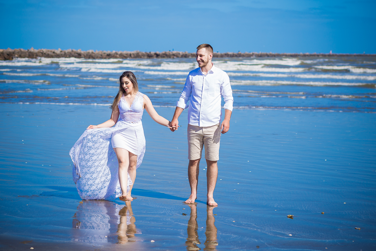ensaio na praia Pré wedding Ensaio casal praia do cassino maior praia do mundo noivos